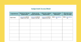 Use an assignment access document that details all the different locations (per class) in which assignments and materials are accessed or submitted. The document also includes contact information, as …