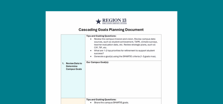 This training is offered throughout the year at ESC Region 13, or we can come to you to provide district or campus-wide support.